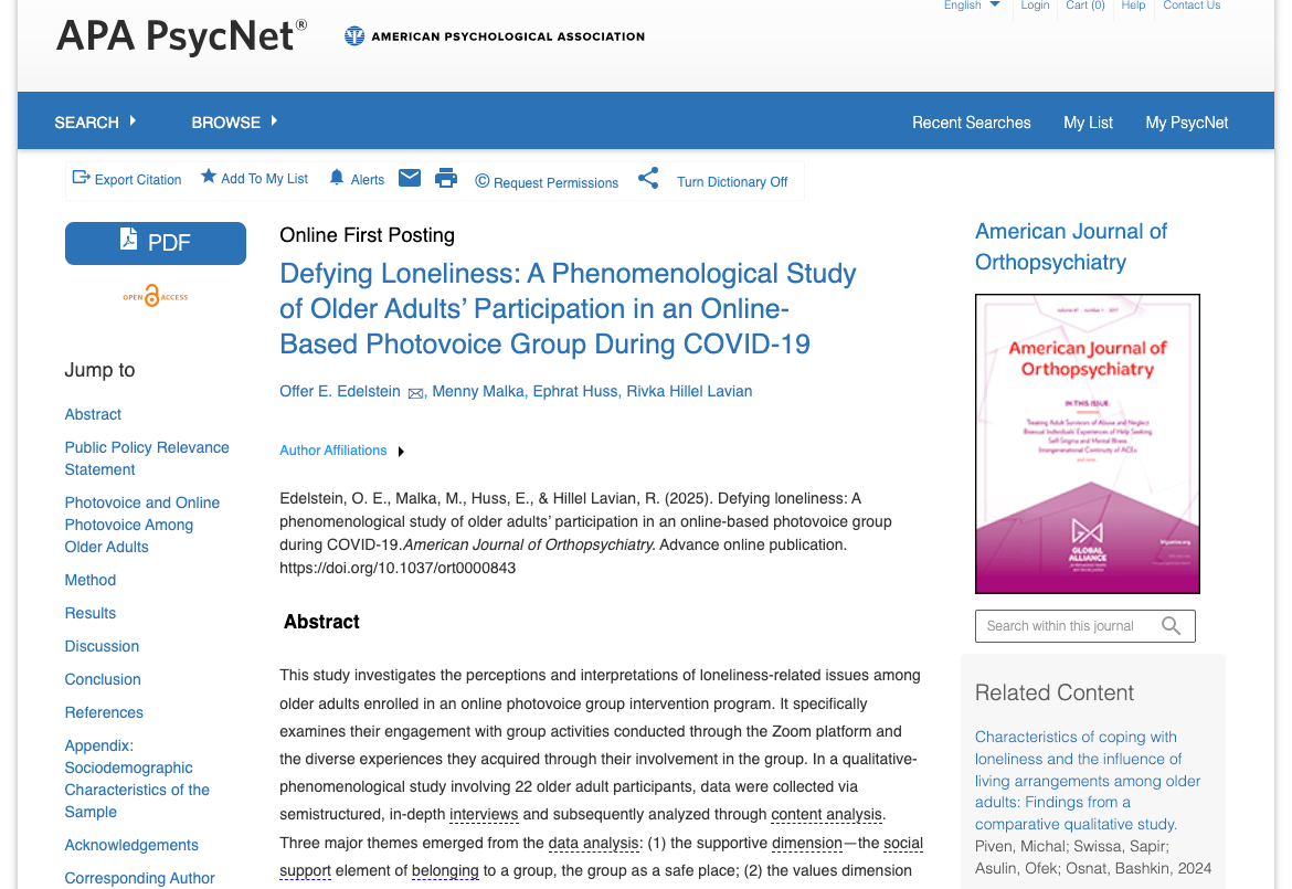Title: Defying Loneliness: A Phenomenological Study of Older Adults' Participation in an Online-Based Photovoice Group During COVID-19 (2025)
